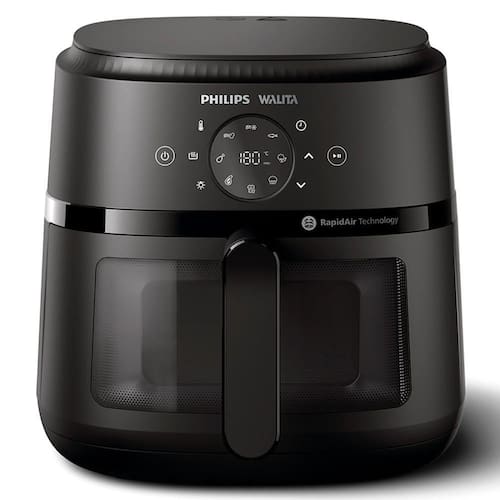 Airfryer Série 2000 XL Digital Philips Walita, com grelha removível: fácil de limpar e mais espaço para preparar as suas receitas! A única com Tecnologia RapidAir patenteada que garante o fluxo de ar por todos os lados, o cozimento mais rápido e uniforme, deixando os alimentos macios por dentro e crocantes por fora. São 1700W e capacidade total e útil de 6,2L (1,2kg). Com janela e iluminação interna, para acompanhar o preparo das suas receitas! Com display digital para ajuste de temperatura de 80 a 200 graus, timer de 60 minutos, 7 funções pré-definidas e desligamento automático. Fácil de lavar Com grelha removível antiaderente e outras peças removíveis, preparadas para a máquina de lavar. Inspire-se com + de 500 receitas no App HomeID A única com Tecnologia Estrelar patenteada que garante o fluxo de ar por todos os lados, o cozimento mais rápido e uniforme, deixando os alimentos macios por dentro e crocantes por fora. São 1400W e capacidade total de 4,1l e útil de 0,8kg. Com ajuste de temperatura de 80 a 200 graus, timer de 30 minutos e desligamento automático. Display Digital. Fácil de lavar: peças removíveis e preparadas para a máquina de lavar. Inspire-se com + de 200 receitas no App NutriU Características Tipo: Fritadeira Capacidade Total e Útil: 6,2 litros Bandeja de Resíduos Tempo de Cozimento Seletor de Temperatura Timer Luz Indicadora Especificações Técnicas Modelo: FRINA230 Material: Plástico Potência: 1700W Consumo de Energia: 2 Km/h Voltagem: 110V / 220V (Não é bivolt) Cor: Preta EAN: 8720389035111 (110V) / 8720389035050 (220V) Garantia: 24 meses Dimensões e Peso Dimensões do produto sem embalagem (AxLxP): 308x308x403 mm Dimensões do produto com embalagem (AxLxP): 330x370x370 mm Peso do produto sem embalagem: 4,05 Kg Peso do produto com embalagem: 5,15 Kg Itens Inclusos 01 Fritadeira Frase INMETRO O produto possui certificação de segurança compulsória, certificado pelo UL-BR 22.4602, organismo acreditado pela Cgcre do Inmetro.