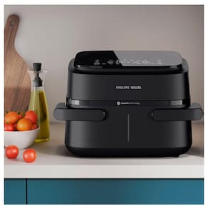 Descubra a inovação na sua cozinha com a Airfryer Série 1000, equipada com um duplo cesto de 7,1L e uma divisória para criar dois compartimentos independentes. A grelha removível facilita a limpeza e oferece mais espaço para preparar suas receitas favoritas.