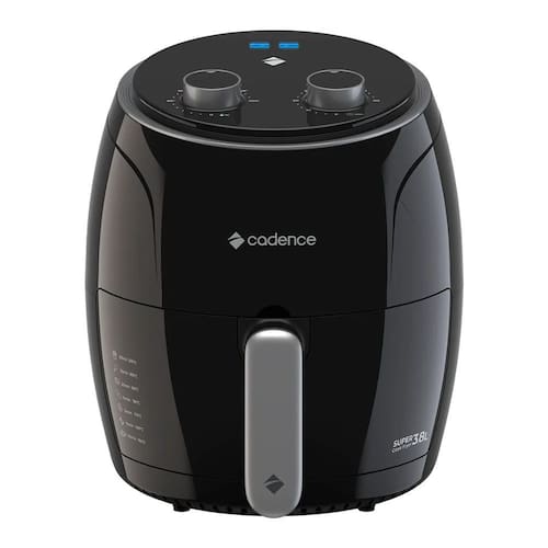 Fritadeira sem óleo com capacidade de 3,8 litros, potência de 1300W, timer de 60 minutos e controle de temperatura de 80°C a 200°C. Possui grelha removível e design compacto.Porta-fio