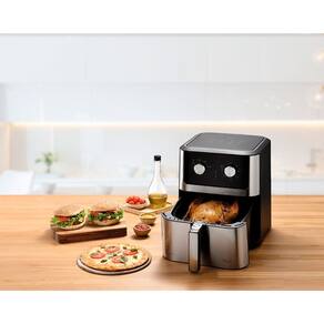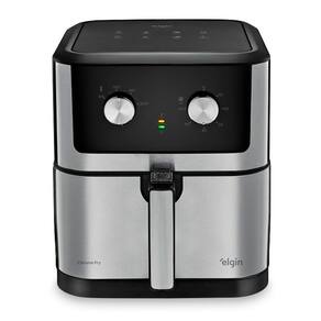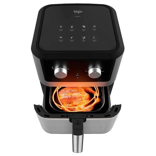 A Fritadeira Elétrica sem óleo Chrome Fry da Elgin possui um design único em inox, potência de 1900W, revestimento antiaderente com tecnologia black resist, que garante maior durabilidade, além de 8L de capacidade, que permite assar um bolo inteiro e fritar 25 mini hambuerguers de uma só vez. Seu sistema de circulação de ar Ultrarapido, Air Circuit 360 graus, frita e economiza energia. Seu cesto de fritura é removível e super fácil de limpar. Ela conta com uma proteção contra super aquecimento. Possui controle de temperatura de 80c a 200c que permite você programar a temperatura de preparo para cada tipo de alimento, timer para até 60 minutos com aviso sonoro e desligamento automático, assim você pode deixar preparando sua refeição enquanto realiza outras tarefas. Possui base antiderrapante e alça fria que facilitam o uso.