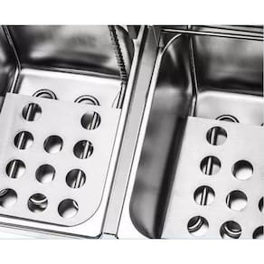 Fritadeira comercial de alta potência que proporciona rápida recuperação de temperatura, essencial para frituras com qualidade. Termostato regulável, caixa de controle em termofixo blindada, cesto niquelado em aramado de alta resistência, o níquel permite um brilho e resistência a mais no cesto, empunhadura do cesto em termoplástico, aquecimento por resistência elétrica blindada em aço inox, lâmpada indicadora de aquecimento, reservatório removível, tampa em inox com puxador, acabamento em aço inox escovado, pés antiderrapantes. Altamente resistente e durável, ideal para uso diário residencial ou profissional como lanchonetes, hambúrguerias e restaurantes. Um utensílio que confere beleza e durabilidade em sua cozinha, muito leve e fácil de manusear, além de seu design moderno e inovador. Pode ser doméstica ou industrial, de acordo com sua demanda.