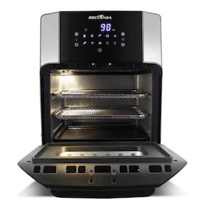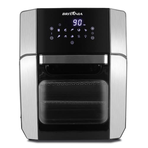 A Fritadeira Air Fryer 12L Britânia BFR2100P vai proporcionar uma comida saborosa e sem óleo, para melhor saúde de todos. Nela você pode preparar os mais variados alimentos, como salgadinhos, batata frita, carnes, linguiças, pão de queijo, pasteis, dentre outros com total praticidade. Basta colocar em suas prateleiras e bandejas antiaderentes de que tem capacidade de até 12 litros.
