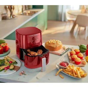 única com Tecnologia RapidAir patenteada que garante o fluxo de ar por todos os lados, o cozimento mais rápido e uniforme, deixando os alimentos macios por dentro e crocantes por fora. São 1400W e capacidade total de 4,1l e útil de 0,8kg. Com ajuste de temperatura de 80 a 200 graus, timer de 60 minutos e desligamento automático. Display Analógico. Fácil de lavar: peças removíveis e preparadas para a máquina de lavar louças. Com Tecnologia RapidAir patenteada que garante o fluxo de ar por todos os lados, o cozimento mais rápido e uniforme, deixando os alimentos macios por dentro e crocantes por fora