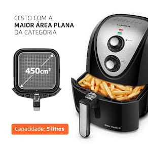 A Fritadeira Air Fryer AFN50BI da Mondial pode levar praticidade e alimentação saudável para a sua rotina diária. E, com o cesto com capacidade de 5 litros, você pode compartilhar esses benefícios com toda a sua família! A Tecnologia de Circulação de Ar Quente cozinha, frita (a ar), assa ou tosta os alimentos sem precisar adicionar óleo ou manteiga. Aliada à alta potência, a tecnologia da Fritadeira a Ar também possibilita rapidez nos preparos.