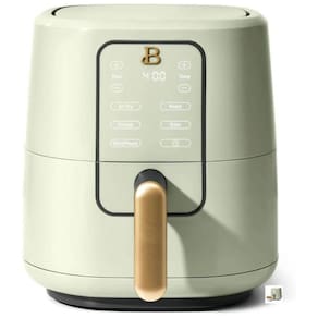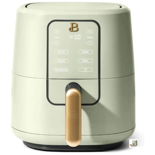 Fritadeira elétrica sem óleo com tecnologia TurboCrisp, painel digital touchscreen, 4 programas pré-configurados (Air Fry, Bake, Roast e Reheat), controle de temperatura e tempo, estrutura compacta em plástico e metal, cesto interno com revestimento antiaderente livre de PFOA e PFOS. Cesto e bandeja removíveis e compatíveis com lava-louças.Porta-fio