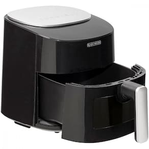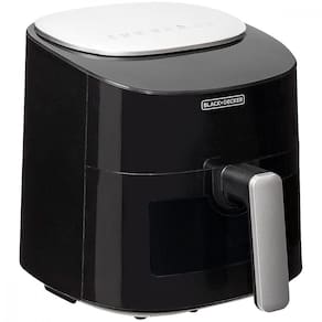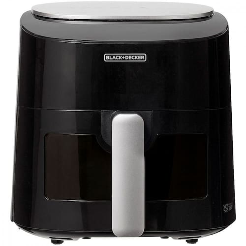 Fritadeira Elétrica Air Fryer Black + Decker sem Óleo com capacidade de 4.5 litros, 1200W de potência, tecnologia de ar quente 360º, cesto com visor frontal, painel digital touch e 8 funções pré-programadas.Porta-fio
