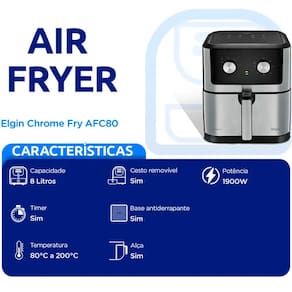 Fritadeira Elétrica Air Fryer Chrome Fry Elgin AFC80 8L 1900W - 220V