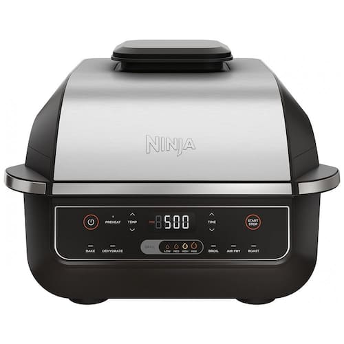 Componentes Incluídos: Ninja Foodi Grill, Grelha de 25 cm x 25 cm, Cesta Crisp de 3,8 Litros, Panela de Cozimento de 5,7 Litros, Livro de Receitas com 15 Receitas Criadas por Chefs, Escova de Limpeza