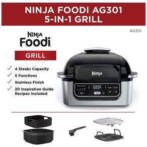 Fritadeira Elétrica Airfryer com Grill Ninja Foodi, 5 em 1 programável, tecnologia de grelhamento ciclônico, potência de 1760W, cesto crocante de 4 litros, panela de cozimento de 6 litros, grelha antiaderente, fácil de limpar.Porta-fio