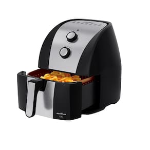 - Capacidade: 5,5 litros - Potência: 1500W - Consumo: 1,5 kWh - Tecnologia Air Flow 360° - Revestimento interno Gold com 4 camadas protetivas - Cesto quadrado, removível e antiaderente - Trava de segurança no cesto - Desligamento automático - Lâmpada piloto - Controle de temperatura: 80°C a 200°C - Timer de até 60 minutos - Acabamento preto com inox - Antiaquecimento externo - Proteção contra superaquecimento - Tipo de tomada: 20A de 3 pinos (110V) e 10A de 3 pinos (220V) - Dimensões: 33 x 28 x 36 cm - Peso: 4,1 kgPorta-fio