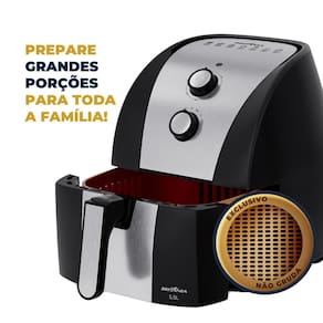 simEquipada com Tecnologia Air Flow 360º, garante cozimento uniforme em todos os lados, deixando os alimentos crocantes por fora e macios por dentro. Seu cesto quadrado e removível possui trava de segurança e revestimento Gold com 4 camadas protetivas. Oferecendo maior resistência à abrasão e excelente antiaderência, evitando que os alimentos grudem e facilitando a limpeza.