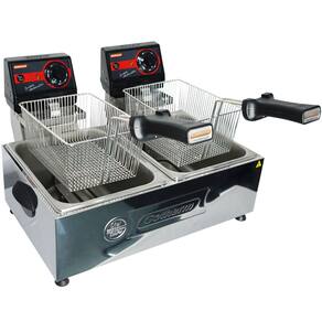 A Fritadeira Elétrica Profissional FRITA FÁCIL é ideal para pequenos e grandes empreendedores de bares, padarias, restaurantes, cafeterias, buffets, lanchonetes, lojas de conveniência e de cozinhas em geral. Com uma capacidade total de 10 litros, ela é uma fritadeira perfeita para preparar porções na medida certa para seus clientes ou convidados. Para uma maior segurança, vem equipada com alças laterais em material termo isolante, termostato regulável, cestos mais robusto produzido em arame estanhado e cuba em aço inox para uma maior facilidade na limpeza. Possui caixa de ligação blindada em polímero baquelite de alta temperatura e insuperável resistência mecânica contém um sensor de temperatura (bulbo) em contato direto com o óleo, o que proporciona maior confiabilidade na leitura da temperatura. O Sistema de segurança atua protegendo o superaquecimento do óleo e do elemento resistivo, proporcionando sua retomada com o simples rearme manual. Possui 2 cubas de armazenamento em aço inoxidável com capacidade para 5 litros de óleo - em cada cuba - e cesto robusto em aramado de fácil remoção trazendo praticidade, principalmente na hora de limpar. O Prático sistema de escorredor faz com que o excesso de óleo retorne a cuba de armazenamento, garantindo frituras sequinhas e mais saudáveis.