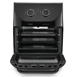 Recursos: luz interna, porta removível, proteção contra superaquecimento, controle de temperatura, grelha antiaderente e bandeja coletora