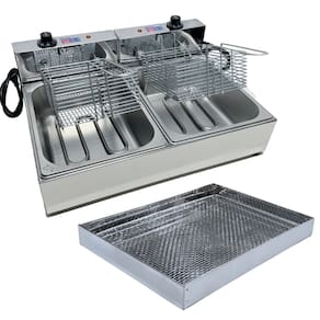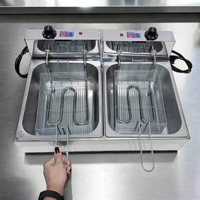 Fritadeira elétrica industrial com 2 cubas independentes de 5 litros cada, totalizando 10 litros. Fabricada em inox de alta qualidade. Termostato ajustável de 50°C a 300°C. Ideal para uso comercial e residencial com alta demanda.Porta-fio