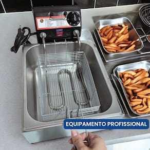 Cuba 5 Litros + Tampa. Sistema antichamas. Termostato ajustável de 50°C a 300°C. Uso comercial e residencial.