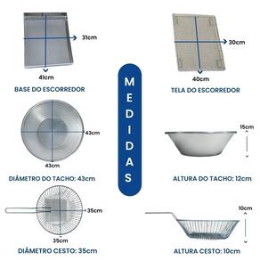 Tacho esmaltado com capacidade de 10 litros, ideal para uso comercial e residencial. Inclui escorredor grande para frituras sequinhas, termostato ajustável de 50°C a 300°C, cabos reforçados em inox e resistência blindada.Porta-fio