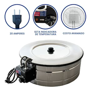 Tacho redondo esmaltado de 10 Litros com tampa. Termostato ajustável de 50°C a 300°C. Uso comercial e residencial.