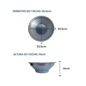 - Tacho Altura: 14 cm x Diâmetro Cima: 32,5 cm