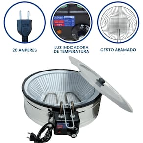 Tacho Redondo 7 Litros Esmaltado Com Tampa. Ideal para restaurantes, lanchonetes, quiosques e cozinhas residenciais de alta produção. Tacho esmaltado resistente à corrosão, facilita a limpeza e prolonga a vida útil. Acompanha tampa protetora para mais segurança contra respingos, ajuda na conservação da temperatura do óleo e mantém a higiene. Termostato ajustável de 50°C a 300°C. Uso: Comercial e Residencial.Porta-fio