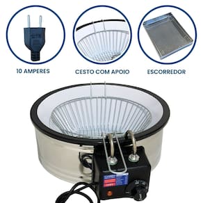 Voltagem: 110V (1.600W) ou 220V (1.600W)Tomada: 10ADimensões: Altura: 14cm | Diâmetro: 32,5cmDimensões Escorredor M: Comprimento: 33,5cm | Largura: 26,5cmUso: Comercial e Residencial