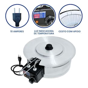 Tacho Redondo 5 Litros Esmaltado Com Tampa A fritadeira industrial elétrica com tacho redondo de 5 Litros esmaltado com tampa é perfeita para quem busca eficiência, durabilidade e segurança no preparo de frituras. Indicada para restaurantes, lanchonetes, quiosques e cozinhas residenciais, ela entrega resultados profissionais com facilidade de uso. O tacho é revestido com esmalte, proporcionando uma camada protetora que é resistente à corrosão, facilita a limpeza e contribui para a durabilidade do equipamento. A tampa inclusa traz ainda mais proteção contra respingos, higiene no preparo e conservação da temperatura, otimizando o processo. Características que Fazem a Diferença: Capacidade Total da Cuba: 5 Litros (óleo + alimentos)Capacidade de Óleo: de 2 a 3,5 LitrosTermostato Ajustável: De 50°C a 300°C, com regulagem precisa Instruções Rápidas para Uso: Nunca ligue a fritadeira sem óleo.Atenção com temperaturas acima de 200°C, pois podem causar queima do óleo.Para medir o óleo, faça a medição com água, sempre com a fritadeira desligada.Atenção: Nunca misture água e óleo e nunca ligue a fritadeira com água. Especificações Técnicas: Voltagem: 110V (1.600W) ou 220V (1.600W)Tomada: 10ADimensões: Altura: 14cm | Diâmetro: 32,5cmUso: Comercial e Residencial Conteúdo da Embalagem: 01 Aro Inox 01 Cabeçote com resistência blindada01 Cesto de fritura aramado01 Tacho esmaltado 01 Tampa 01 Manual de instruções Marca: Não Informado
