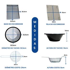 Tacho Esmaltado 5 Litros com Escorredor e Tampa. Termostato ajustável de 50°C a 300°C. Uso comercial e residencial.Porta-fio