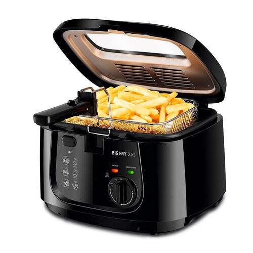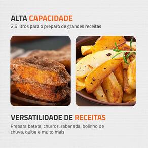 Com capacidade de 2,5 litros, oferece ótimo rendimento para porções individuais ou pequenas famílias. Seu design moderno na cor preta combina facilmente com qualquer ambiente, enquanto a operação em 127V garante desempenho eficiente e seguro.