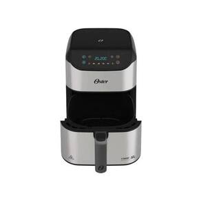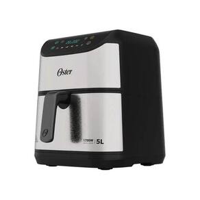 Air Fryer Digital Oster OFRT930 com capacidade de 5 litros, design em aço inox, painel digital com funções pré-programadas, timer de 60 minutos e temperatura ajustável de 80°C a 200°C.Porta-fio