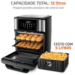 • Capacidade total: 12 litros: prepare grandes porções e de uma só vez. São 12 litros de capacidade: a Air Fryer Oven da Mondial é uma gigante na categoria!