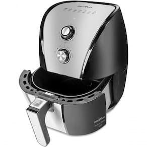 Frita com pouquíssimo ou nenhum óleo; Seletor de temperatura com ajuste de 80 a 200°C; Timer de 60 minutos; Capacidade do cesto 4,35l; Capacidade da cuba de 5 litros; Luzes indicadoras de funcionamento - laranja; Base antiderrapante; Cesto com formato quadrado; Cesto removível com revestimento antiaderente; Trava de segurança; Sistema de proteção contra superaquecimento; Acabamento frontal em inox.Porta-fio