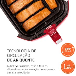 -Capacidade de 4 Litros; -Controle de temperatura; -Painel em Aço Inox; -1.500W de potência; -Lâmpada piloto; -Timer; -Aviso sonoro; -Desligamento automático; -Revestimento antiaderente; -Rapidez e Praticidade; -Acompanha livro de receitas.Porta-fio