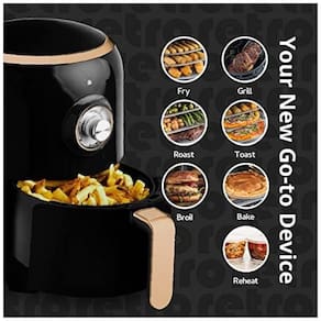 A fritadeira elétrica sem óleo Aria Air Fryers 2Qt retrô preta foi desenvolvida para uso doméstico, permitindo preparar alimentos fritos, assados e grelhados com redução de até 80% de gordura, sem necessidade de óleo. Com cesto interno e grade em cerâmica antiaderente, o equipamento possui construção livre de PTFE, PFOA, BPA e teflon, tornando o preparo mais seguro para a saúde e facilitando a higienização diária.