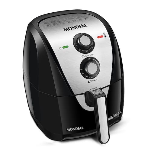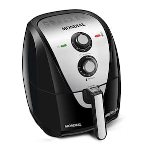 Fritadeira Elétrica Sem Óleo Mondial Grand Family 5,5 Litros Inox 220V AF-55I 69474-02Para aqueles que procuram maior praticidade na rotina, sem perder na qualidade de vida, a Mondial apresenta a Fritadeira Elétrica Sem Óleo Grand Family AF-55I.Com a qualidade Mondial e design sofisticado a Grand Family torna o ato de cozinhar muito mais prazeroso. Agora você pode fritar seus alimentos favoritos sem a utilização de óleo, sem sujeira e sem deixar fumaça pela casa toda. Todos seus pratos preferidos prontos em poucos minutos e servindo toda a sua família. A Grand Family é perfeita para a família toda pois conta com capacidade de 5,5L. Seu cesto com interior quadrado permite que os alimentos sejam acomodados de melhor maneira, além de assá-los de maneira uniforme. Ela conta também com seleção de temperatura até 200ºC e timer de até 60 minutos que desliga automaticamente após o termino do preparo. É capaz de assar, cozinhar, gratinar e fritar, trazendo muito mais possiblidades de receitas. Muito mais segurança e facilidade na sua rotina.Com motor de 1900W de potência que trazem muito mais rapidez nos preparos, a AF-55I também conta com lâmpadas piloto que indicam o funcionamento e aquecimento do produto. Seu cesto removível possui revestimento antiaderente, sendo segura, prática e facilitando o manuseio e limpeza garantindo mais tempo livre para você aproveitar momentos com a sua família. Especificações Técnicas:- Marca: Mondial- Linha: Grand Family- Modelo: AF-55i- Referência: 69474-02- Voltagem: 220V- Tipo de fritadeira: Fritadeira Sem Óleo- Cor: Preto e Inox- Capacidade: 5,5L- Potência: 1900W- Tipo de tomada (amperes): 20A- Temperatura: Até 200ºC- Timer: 60 minutos- Revestimento antiaderente: Sim- Luz indicadora: Sim- Segurança: Aviso sonoro e desligamento automático- Ação do produto: Assar, cozinhar, gratinar e fritar seus alimentos- Tipo de alimentos que comporta: Prepara petiscos, massas, carnes, pastéis, pão de queijo, churros, peixes entre outros- Itens inclusos: 01 Fritadeira Elétrica – 01 Livro de receitas - Manual de instruções- Dimensões do Produto (AxLxP): 32,5 x 30,5 x 38 cm- Dimensões da Embalagem (AxLxP): 35,9 x 44,7 x 36,4 cm- Peso Líquido: 5,185kg- Peso Bruto: 6,085kg- Garantia: 12 meses