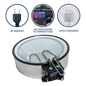 A fritadeira industrial elétrica tacho redondo de 7 litros esmaltada é um equipamento projetado para o preparo de alimentos fritos em ambientes comerciais, como restaurantes, lanchonetes, quiosques e cozinhas residências.