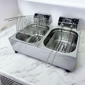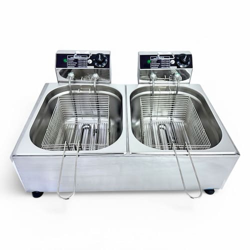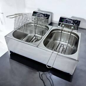 Especificações Técnicas: Voltagem: 220V Capacidade total: 16 litros (8L por cuba) Material: Aço inox de alta resistência 2 cubas de 1/2 x 150 2 cestos individuais Termostato ajustável para controle preciso da temperatura Resistência elétrica de alto desempenho