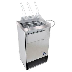 A máquina para fritar batatas tem capacidade de 20 litros de óleo e 6 litros de água, fazendo com que o óleo dure muito mais e garantindo o sabor e qualidade dos seus salgados. Para essa quantidade de água é necessário colocar ao fundo do fritador 600 gramas de Sal Grosso sem tempero.
