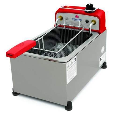 Fritadeira Inox Elétrica 5 Litros Pr-10E 127V Progás Modelo: pr-10 e style Capacidade cesto : 250 gramas Capacidade óleo : mínimo 2 litros; máximo 4 litros; 5 litros compreende a capacidade total até o transbordamento da cuba Estrutura em aço inox; Acompanha cesto; Resistência em aço inox; Termostato para controle de temperatura automático; Tensão: 127v Potência: 2500w Consumo elétrico média : 2,5 kw/h Área de fritura: 20x30cm Dimensões externas axlxp : 31 x 27 x 44 cm Peso líquido: 3,7 kg Peso bruto: 4,4 kg Garantia: 6 meses. De acordo com normas de qualidade/segurança: abnt nbr nm 60335-1 e iec 60335-2-37.