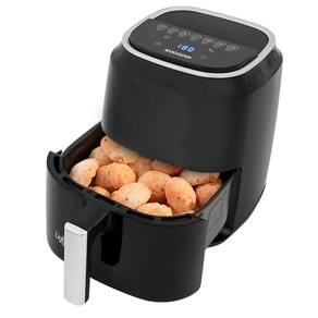 Fritadeira elétrica com painel digital touch control, controle de temperatura ajustável de 80°C a 200°C, função timer de 60 minutos, tecnologia de circulação de ar quente. Frita sem óleo.Porta-fio