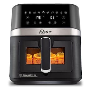 Fritadeira Oster DiamondTech com capacidade de 6 litros, visor transparente, painel touch com 10 funções pré-programadas, cesto removível e tecnologia DiamondTech antiaderente.Porta-fio