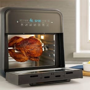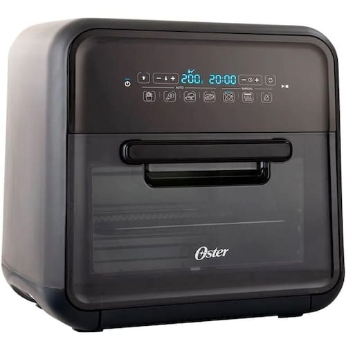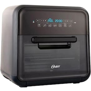 Fritadeira 3 em 1 Oster Super Fryer 10L, assa, frita sem óleo e desidrata alimentos. Possui 7 funções de preparo (3 manuais e 4 pré-programadas), kit completo de acessórios e design funcional com porta de vidro e luz interior.Porta-fio