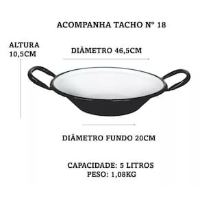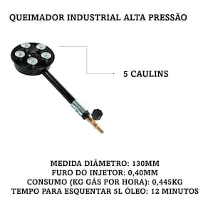 Possui queimador de alta pressão, acompanha Tacho nº18. Utiliza gás de botijão. Serve para frituras em geral industrial.