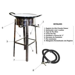 Fogão Pasteleiro Roa Médio com Tacho é especial, pois torna seu alimento crocante e perfeito!Imagine o aroma irresistível de pastéis dourados preenchendo sua cozinha. Economize tempo e energia, o fogão te auxilia em fazer seu alimento em menos tempo pois é adequado para frituras em geral.Possui queimador de alta pressão, acompanha Tacho nº18.Utiliza gás de botijão. Serve para frituras em geral industrial.Informações TécnicasMarca: Indústria ROAMaterial: Chapa de Ferro com Pintura Eletrostática em InoxDimensões do Pasteleiro: Altura Total 76cm x Diâmetro da Boca 35cmDimensões do Queimador: Comprimento Total 360m x Diâmetro 130mm com 05 Caulins (bicos espalhadores de chama)Pés de Alta Resistência removíveis com Pintura EletrostáticaRegistro Zamac com Injetor 0,40mmPeso: 4,04kgEmbalagem: 01 Pasteleiro Profissional com Tacho para Fritutas > Tamanho Médio.