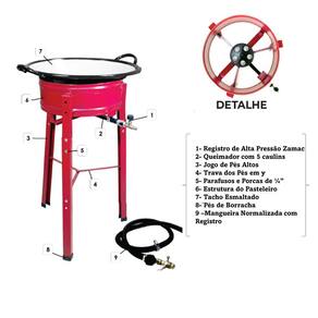 Fogão Pasteleiro Roa Médio com Tacho é especial, pois torna seu alimento crocante e perfeito!Imagine o aroma irresistível de pastéis dourados preenchendo sua cozinha. Economize tempo e energia, o fogão te auxilia em fazer seu alimento em menos tempo pois é adequado para frituras em geral.Possui queimador de alta pressão, acompanha Tacho nº18.Utiliza gás de botijão. Serve para frituras em geral industrial.Informações TécnicasMarca: Indústria ROAMaterial: Chapa de Ferro com Pintura Eletrostática na cor VinhoDimensões do Pasteleiro: Altura Total 76cm x Diâmetro da Boca 35cmDimensões do Queimador: Comprimento Total 360m x Diâmetro 130mm com 05 Caulins (bicos espalhadores de chama)Pés de Alta Resistência removíveis com Pintura EletrostáticaRegistro Zamac com Injetor 0,40mmPeso: 4,5kgEmbalagem: 01 Pasteleiro Profissional com Tacho para Fritutas > Tamanho Médio.