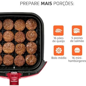Muito além de batata frita: a Air Fryer é versátil e permite que você prepare pratos que vão muito além da clássica batata frita. É possível preparar legumes, carnes, peixes, lasanha, pizzas, além de pratos doces como pudim, bolo de chocolate e cookies. Use sua criatividade para fazer receitas deliciosas.