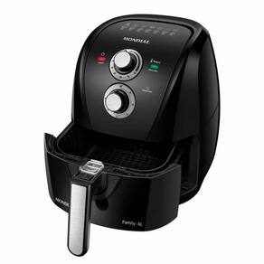 Fritadeira sem Óleo Air Fryer Mondial AFN-40-BFS com capacidade de 4 litros, 1500W de potência, cesto removível com revestimento antiaderente Duraflon, timer de 60 minutos e temperatura até 200°C.Desligamento automático