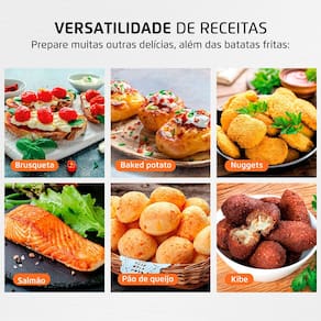 Fritadeira elétrica sem óleo Mondial Maxis AF-01-MX com capacidade de 4 litros, controle de temperatura até 200°C, timer de 60 minutos, cesto antiaderente removível, lâmpadas piloto e desligamento automático.Porta-fio