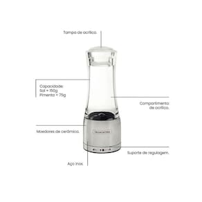 - 1 Moedor Saleiro Sal ou Pimenta Realce em Acrílico e Inox com Moinho em Cerâmica - Tramontina 61653000