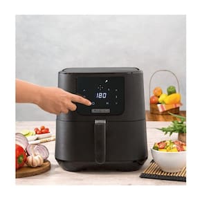 Fritadeira Sem Óleo Com Painel Digital 7 Litros Afd7q-br 1700W Black Decker - Preto - 110V Fritadeira Sem Óleo Com Painel Digital 7 Litros Afd7q-br 1700W Black Decker - Preto - 110VPrepare frituras de forma saudável sem que percam o sabor e a crocância Extremamente prática, possui painel digital com 7 funções pré-programadas que te permitem fazer alimentos deliciosos com pouquíssimo ou nada de óleo. Você pode degustar de petiscos e diversos alimentos e ao mesmo tempo manter uma vida saudável Seu cesto antiaderente tem ampla capacidade e permite o preparo de um frango inteiro de uma só vez Sirva grandes porções para a família ou pequenas porções só para você.Características: Painel digital com 7 programas de preparo; Times de 60 minutos; Cesto quadrado; Controle de temperatura até 200ºC; Sistema de segurança: Desliga automaticamente quando o cesto é removido; Acabamento texturizado.Ficha Técnica Capacidade: 7L Material do recipiente / jarra / copo / coletor: Resina plástica, alumínio e fio de cobre Padrão da tomada: 16A (127V) Tipo de pino: 3 Pinos Filtro Hepa: Hepa Comprimento do cabo elétrico: (m)0,97 Potência: 1700 Watts Frequência: 60 Hz Consumo de energia: 0,067kWh Temperatura: 80C até 200CCor: Preto - Voltagem: 110V Garantia de 12 meses contra defeitos de fábrica.
