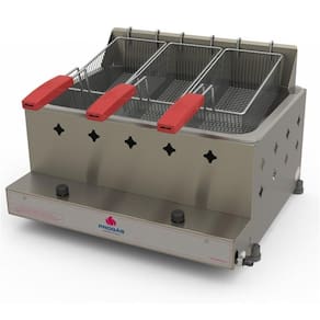 - modelo pr 30g - prepara salgados e frituras em geral. - trabalha á gás glp alta pressão. - cuba para óleo estampada em inox. - manipulador controlador gás - orifício central nos modelos á gás para facilitar a circulação oxigênio - consumo médio 0,7 kg/h. - acompanha 3 cesto removível 9cm a x 25c lm x 13cm p . - capacidade nominal total 8 á 10 lts. - peso líquido - 7,0 kg - peso bruto - 8,2 kg - medidas externas : 39cm a x 51cm l x 43cm p - medidas com a embalagem: 42cm a x 46cm l x 59cm p