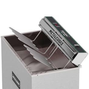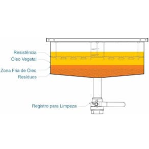 - Fabricado externamente em aço inox escovado 430 e tanque em aço inox 304; - Base em aço carbono reforçado com pintura epóxi e rodízios com freio que impossibilita a movimentação do fritador com óleo dentro; - Painel basculante com resistências blindadas em aço inox facilita a limpeza do tanque; - O controle digital da temperatura garante uma precisão uma padronização mais eficiente do processo; - Registro esférico com ampla passagem para facilitar o escoamento de resíduos; - Equipamento Certificado pela OCP 0070 conforme Portaria 148/2022.